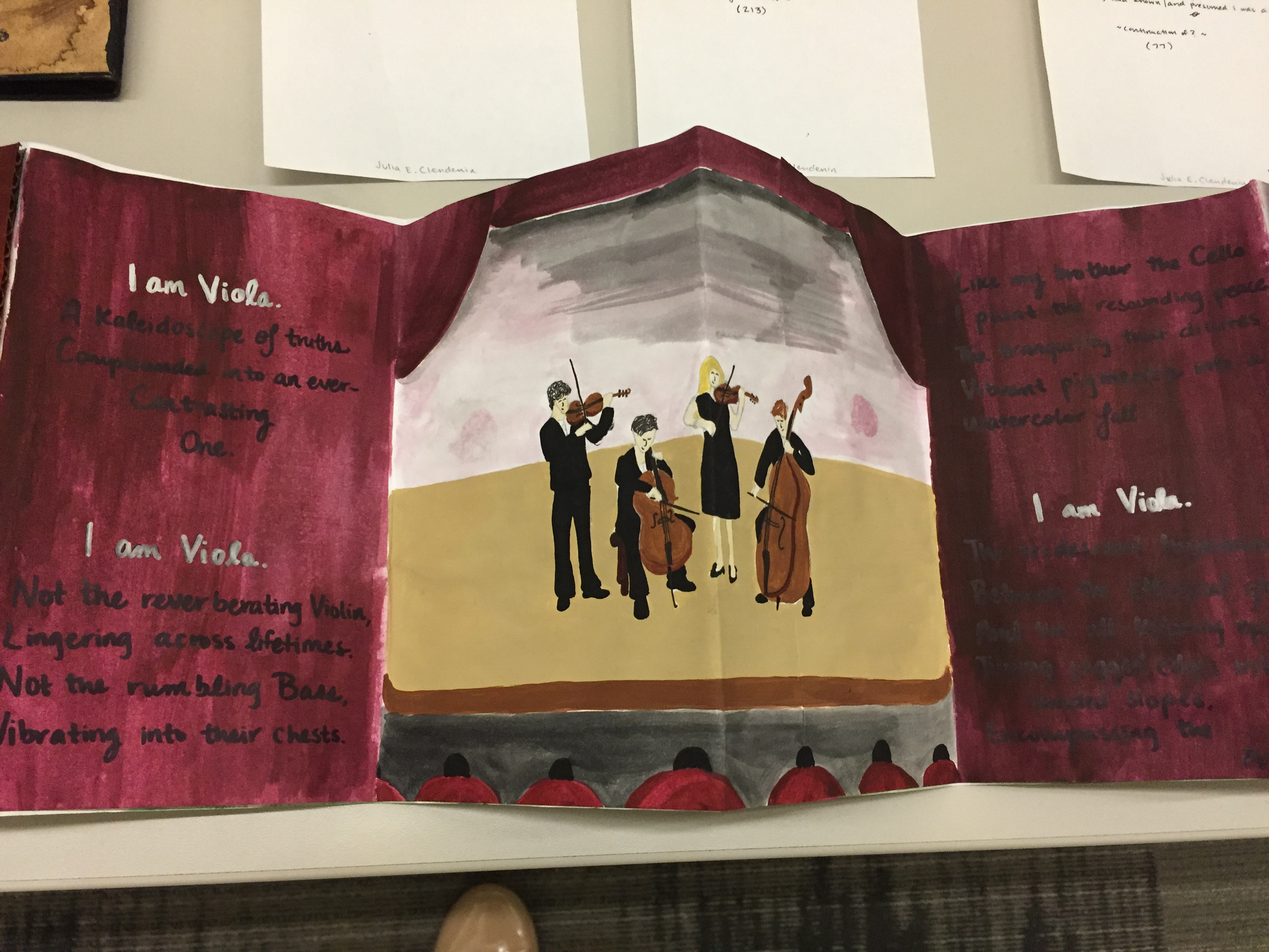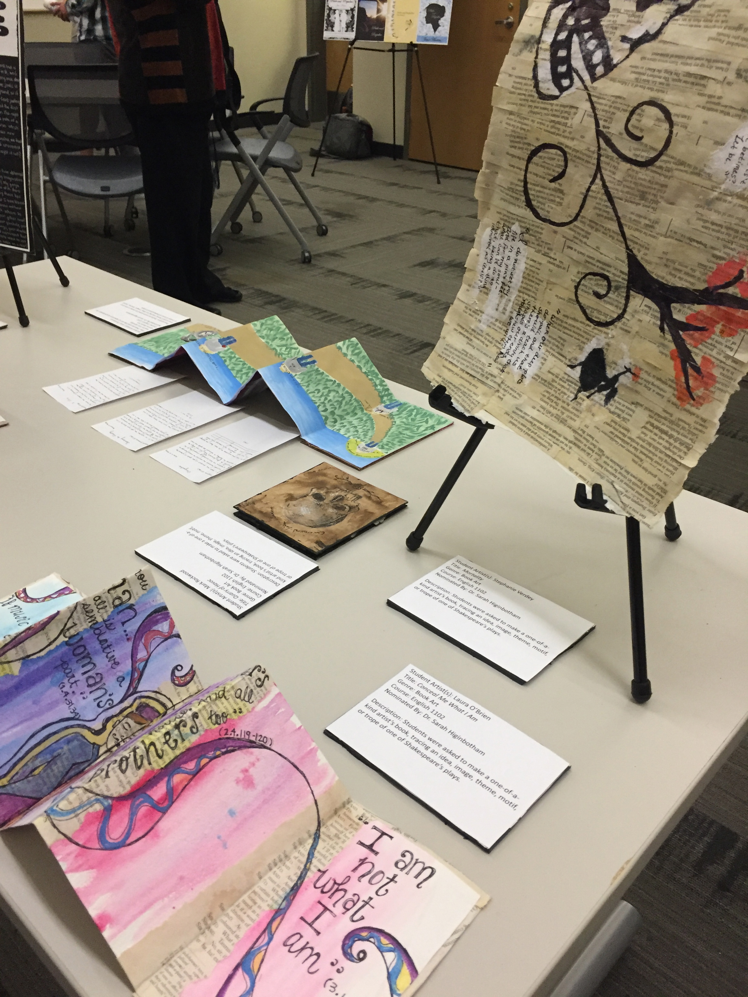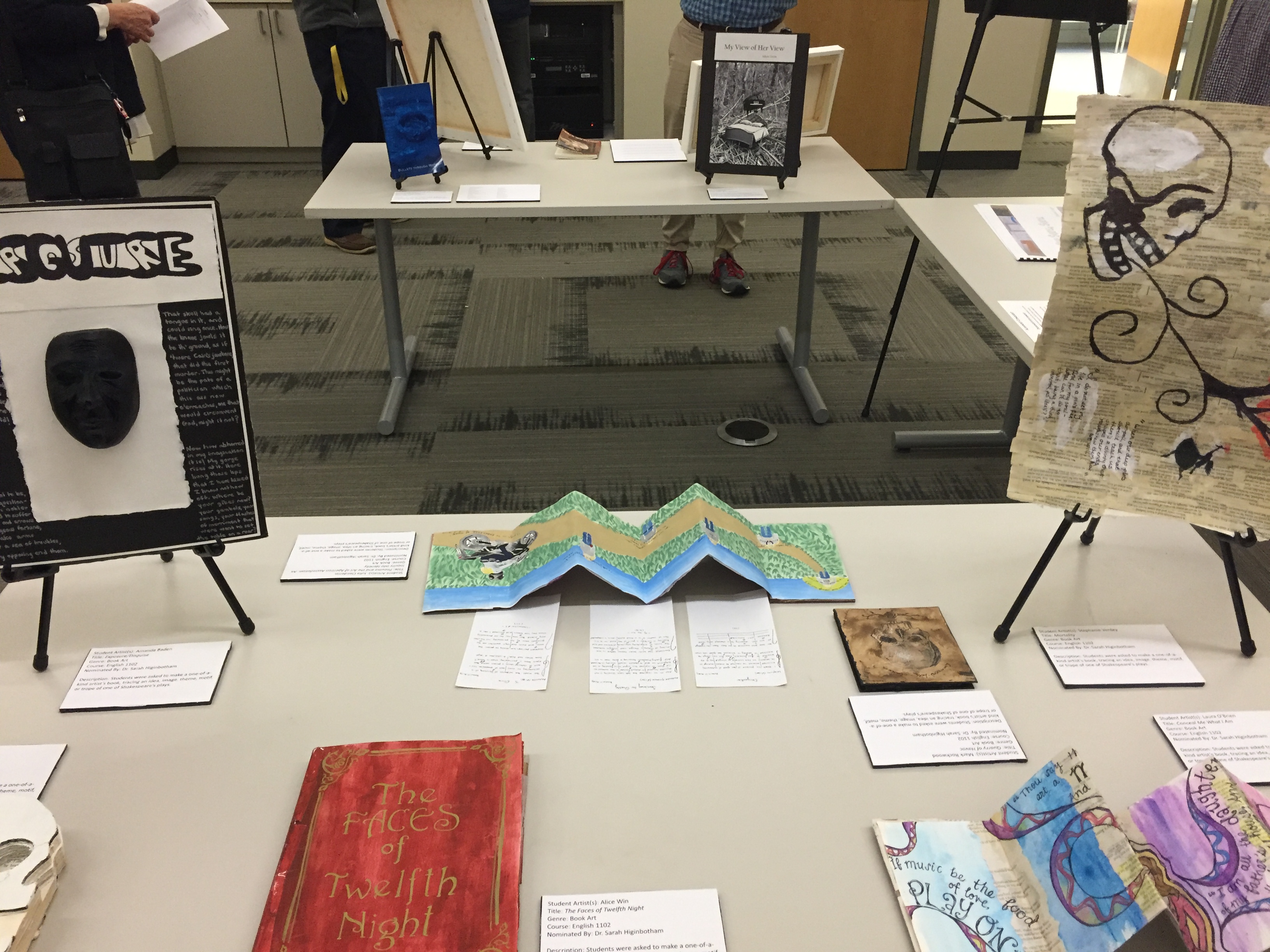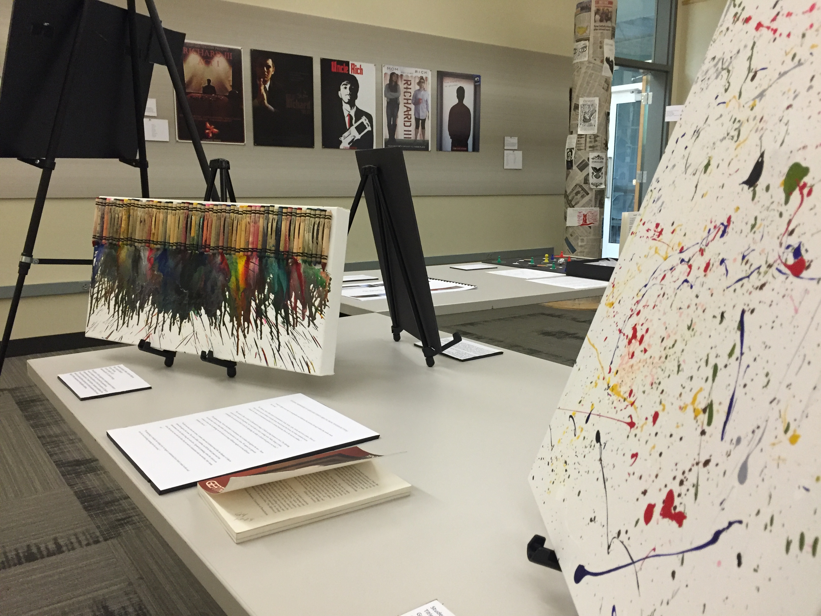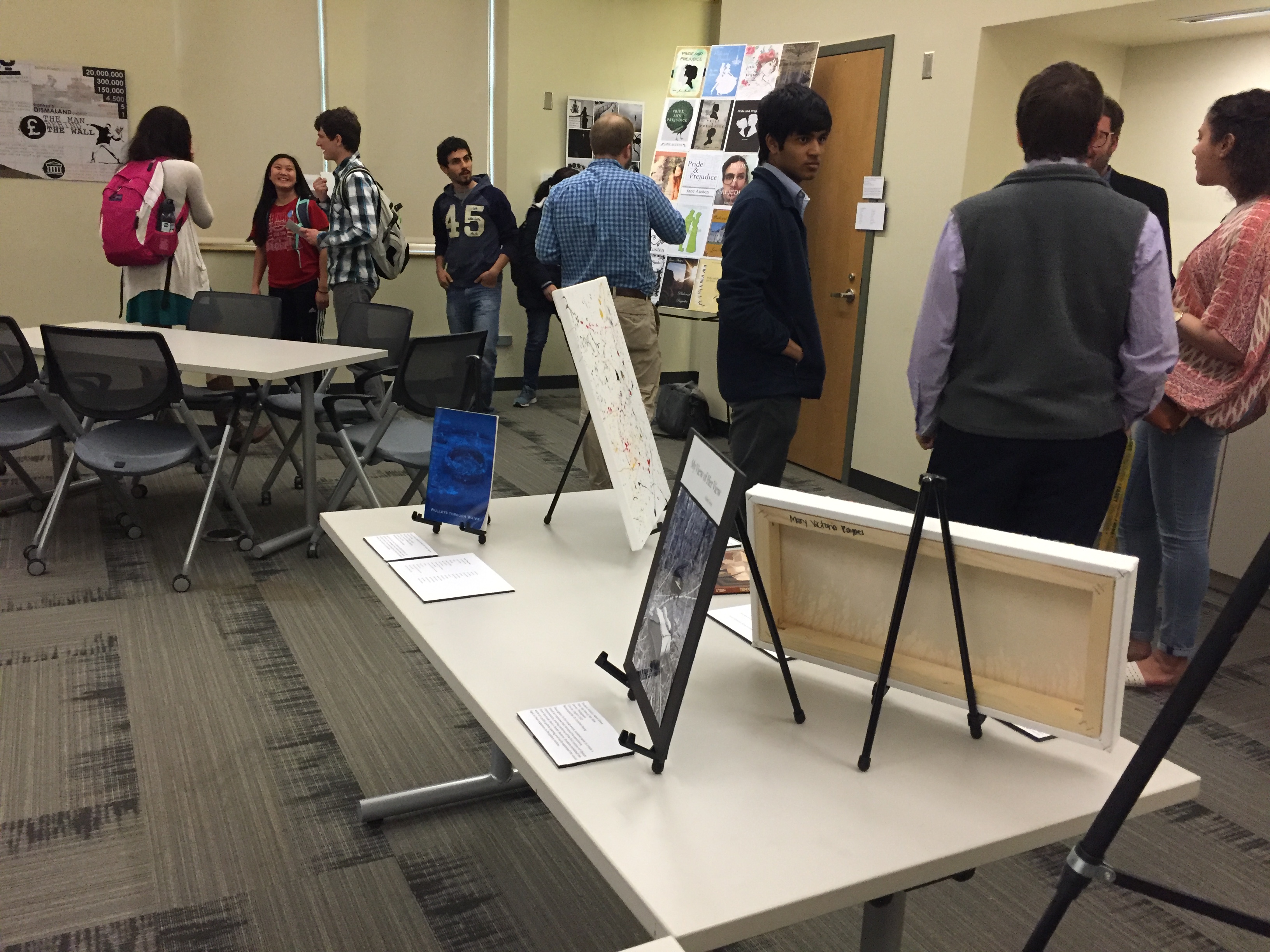 Not only does Student View serve as a venue for celebrating creative and exceptional work of Georgia Tech students but also it asks us to think about what qualifies as art and when we are creating art. Many of the assignments that students are responding to in the artifacts that are featured in the exhibit are not consciously created as art; said another way, the assignments these students were responding to these projects did not task students with making art specifically but rather with making an argument (about a text, an issue, or an idea). What they created prompts us to think about the relationship between art and communication, which can be seen in the more than 30 artifacts representing the work of more than 50 students and the classes of 11 LMC faculty members. The artifacts included book art, films, podcasts, paintings and collages, photography, posters, a board game, and a poetry collection.